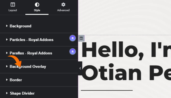 STEP 9: Under the same section, under the style section, scroll down to the background overlay.