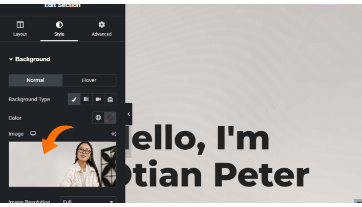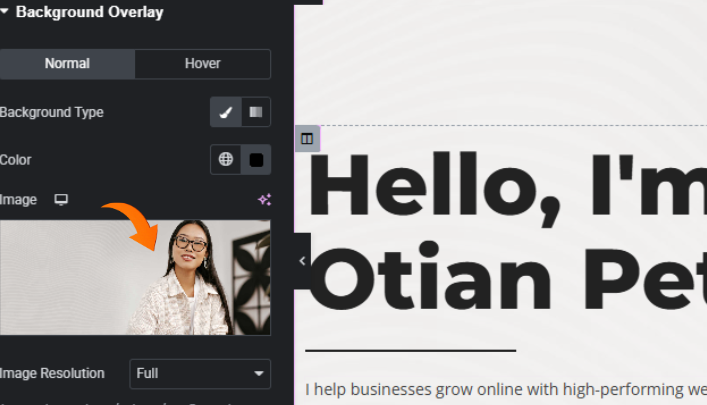 STEP 10: Under the same section, under the style section, scroll down to the background overlay. Select image to change the image.