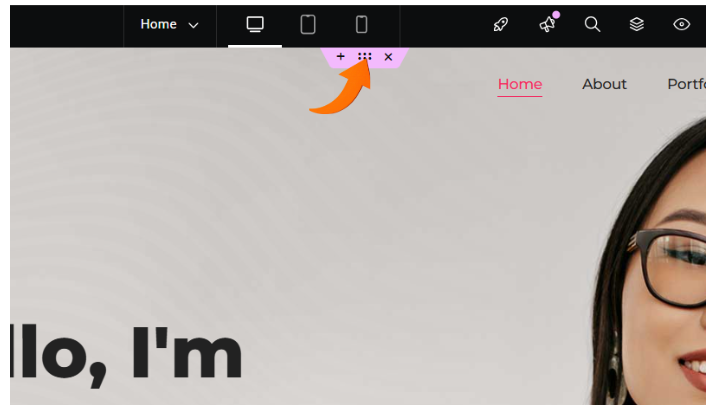 From observation and interaction, you can see that the header image of the lady is embedded in the background while the text is in the foreground, so it is typical to check the section or container to change header images. So we will interact with the section by clicking the six dots.