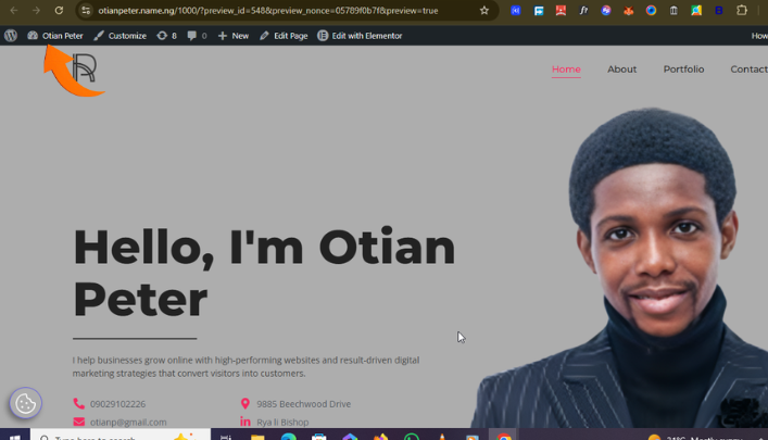 STEP 2: Add “/wp-admin” and then click enter; make sure there are no spaces in the URL and all needs to be in lower case. here is an example: otianpeter.name.ng/wp-admin