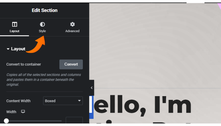 STEP 2: Go to the left dashboard or panel and select the “Style” tab.