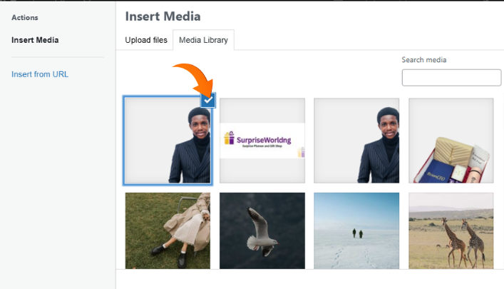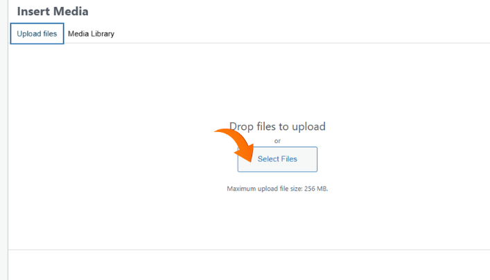 STEP 4: The upload tab is where you upload files, while the media library is where all uploaded media are kept and displayed. Select the Upload files tab to upload the files.