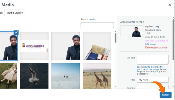 STEP 6: After uploading, wait till it loads successfully. Make sure the blue check icon is on the image you want to use. If not, click on the image till it’s selected (displaying the check icon).