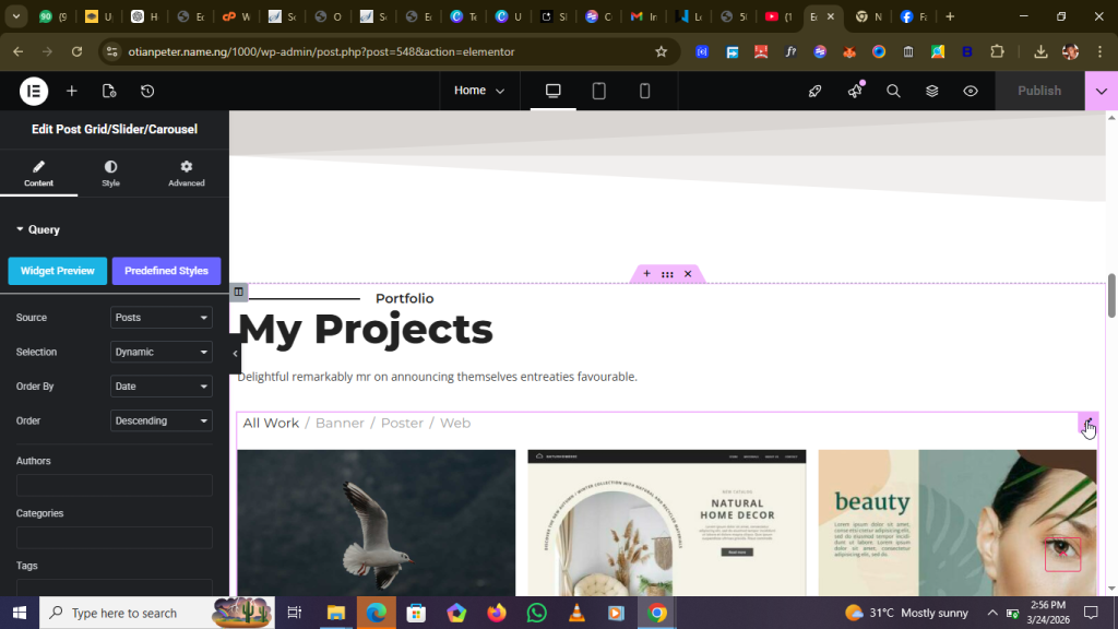 The reason this widget is addressed here is because some elements it displays are pulled from parts of the website that cannot be edited directly within Elementor. For example, the images shown here can only be updated from the Posts section in your WordPress dashboard.