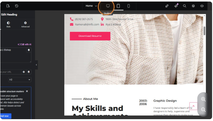 Responsiveness speaks of how a website looks across devices: mobile phones, tablets, and computers. Elementor gives you the features to preview your website in these 3 views during designing.